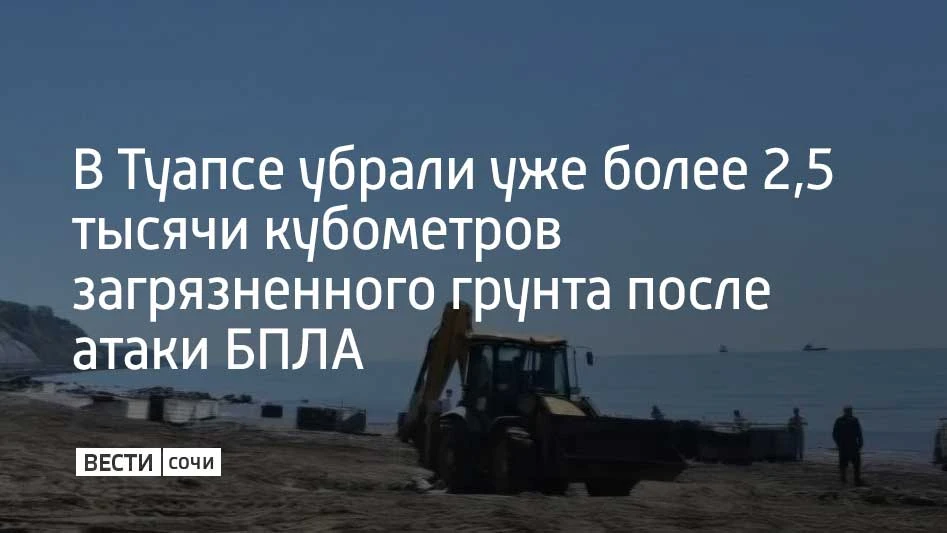 Загрязнение убирают ниже по течению реки Туапсе, а также в акватории и на берегу Черного моря. Задействованы 132 человека и 26 единиц техники, сообщили в оперштабе Краснодарского края.