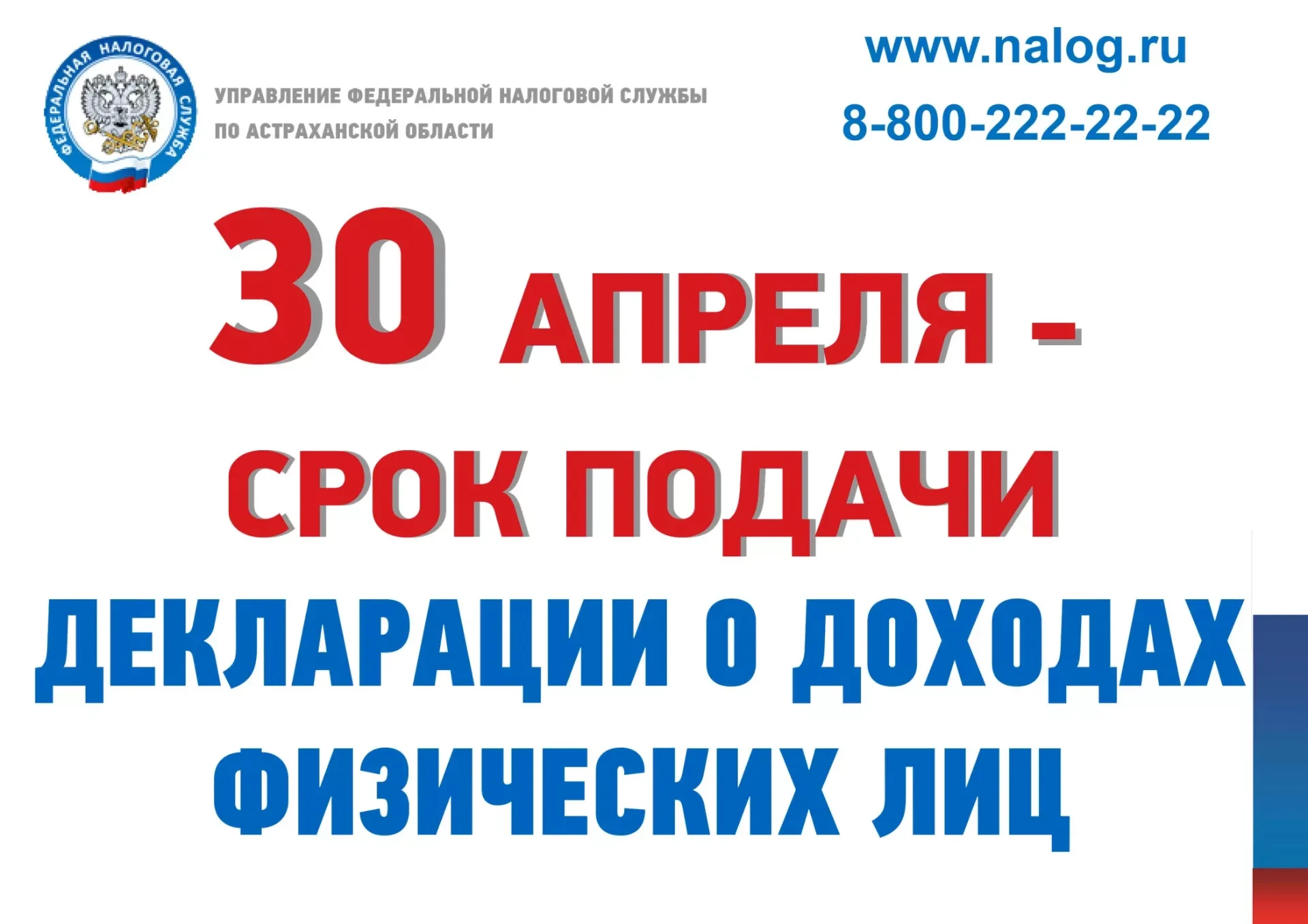 Налоговая служба напоминает: Срок подачи декларации по доходам, полученными физическими лицами в 2025 году, истекает 30 апреля 2026 года