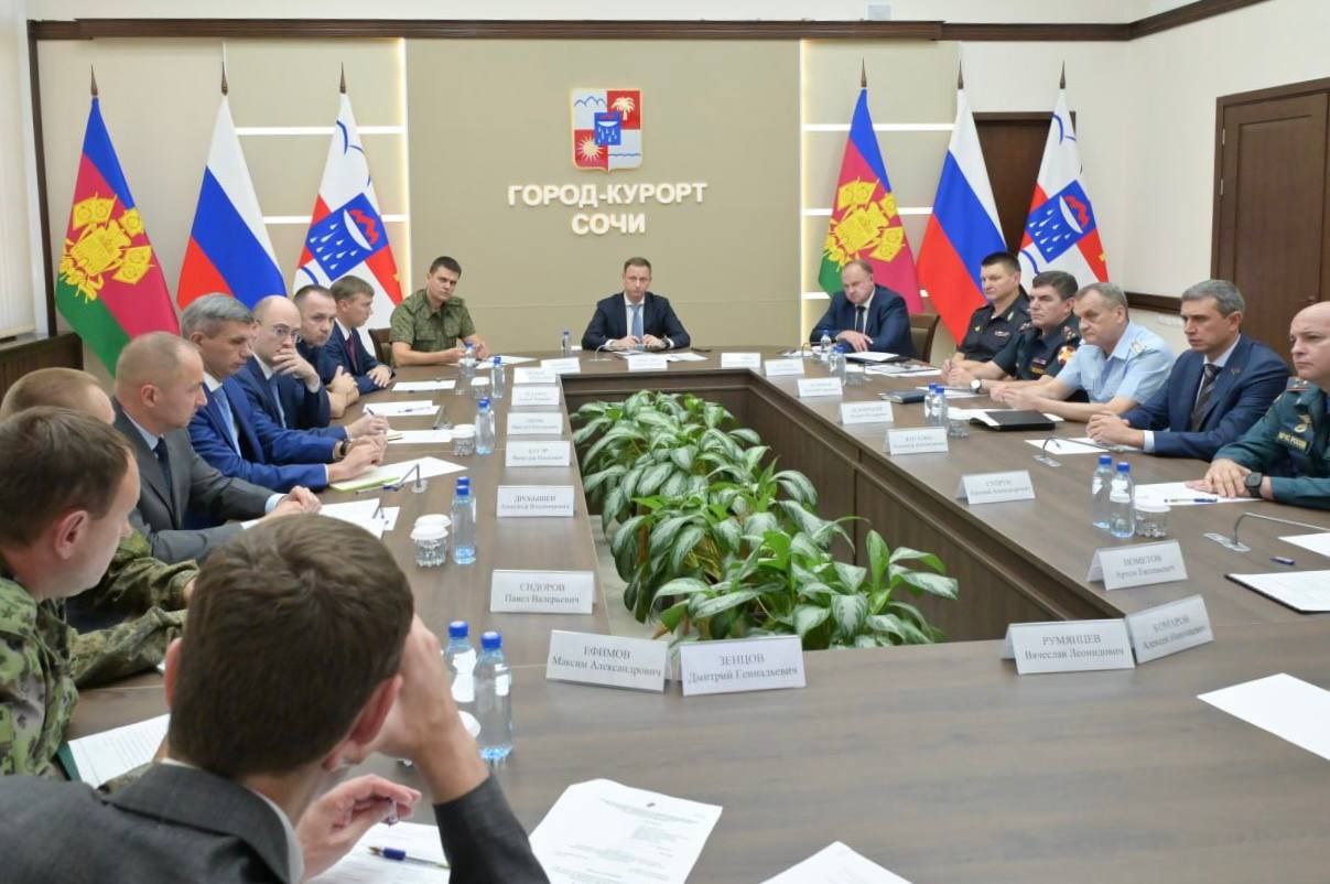 В рамках повестки участники встречи обсудили вопрос о применении мер защиты гражданских судов, находящихся в акватории Черного моря в границах Сочи, морских портов в Сочи и ФТ «Сириус», международного аэропорта Сочи при получении информации о применении противником беспилотных летательных аппаратов и безэкипажных катеров.