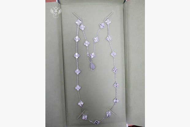Во время досмотра в рюкзаке туристки нашли серьги с перламутром и колье в виде четырехлистного клевера с гравировкой VanCleef & Arpels из коллекции Vintage Alhambra в фирменных футлярах и коробках зеленого цвета. Женщина призналась, что стоимость украшений ей неизвестна, так как это подарок от знакомого. О необходимости декларирования она якобы ничего не знала.