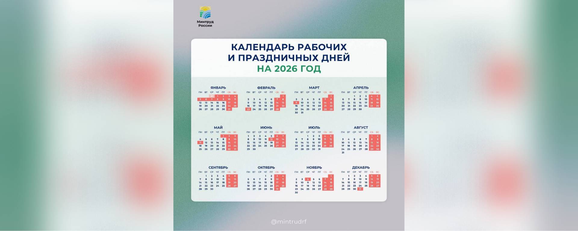 Также выходным днём будет 4 ноября. Следующие новогодние каникулы начнутся 31 декабря 2026 года.