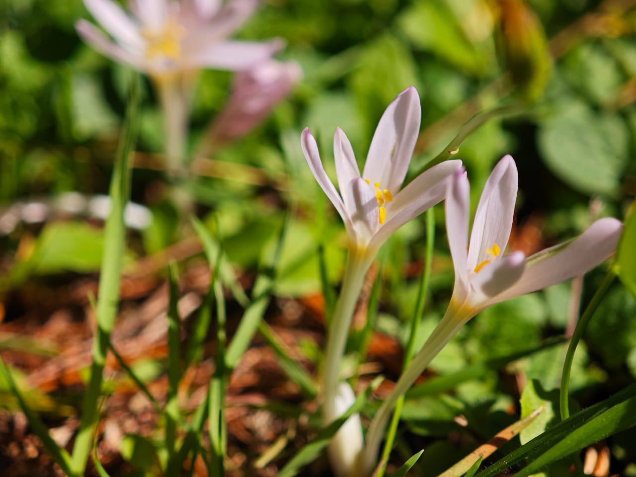 Его летние листья давно засохли, луковица успела отдохнуть и сейчас сквозь почву пробились, похожие на крокусы, цветы.