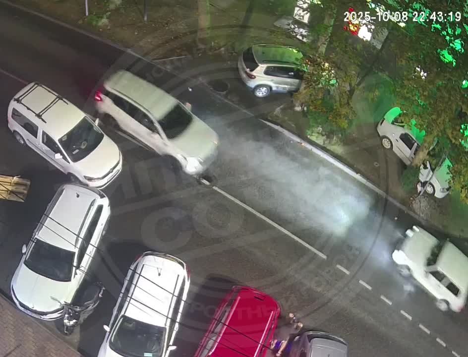 Случилось это на улице Туапсинской. На кадрах видно, как мужчина сначала пытается разогнать самокат, а потом резко «отключается».