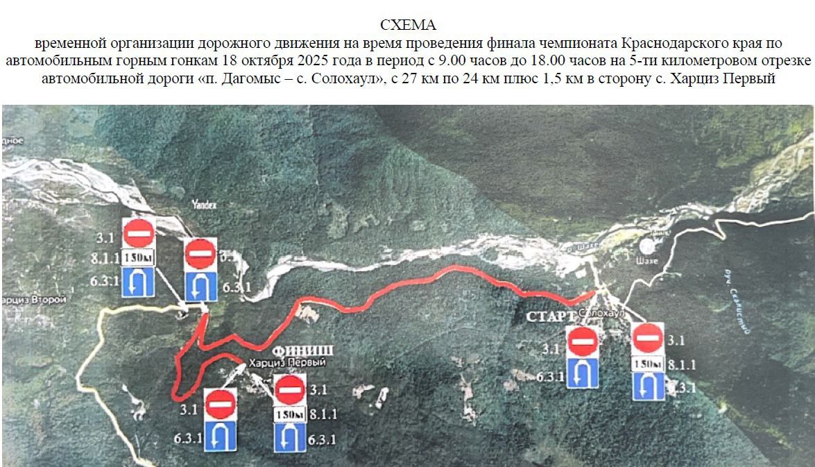 С 9:00 до 18:00 движение транспорта будет ограничено на участке дороги Дагомыс — Солохаул (от 27 км до 24 км + 1,5 км в сторону села Харциз Первый).