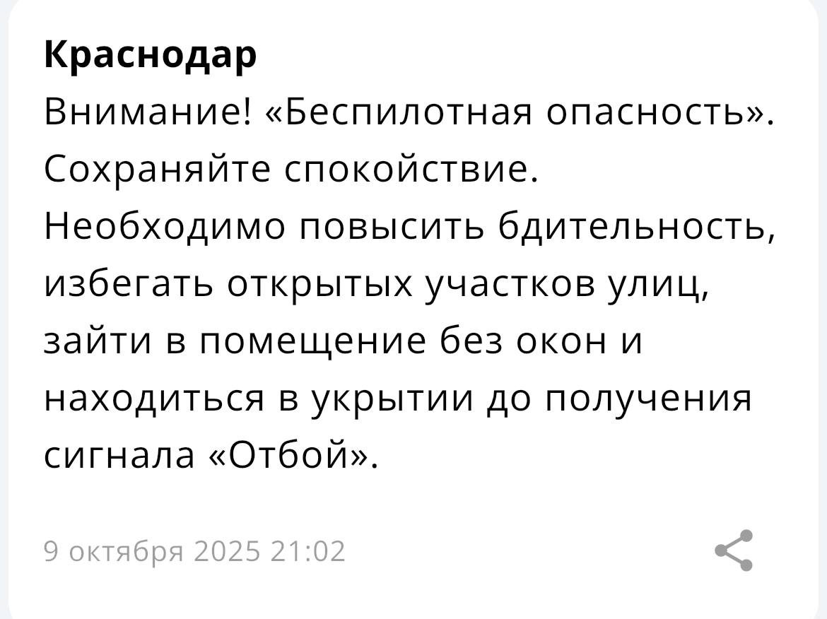 Звук услышали в разных частях города. Вечером 9 октября жители Краснодара сообщили о мощном хлопке, прозвучавшем в небе над городом. По словам очевидцев, звук был слышен примерно в 18:30 в разных районах...
