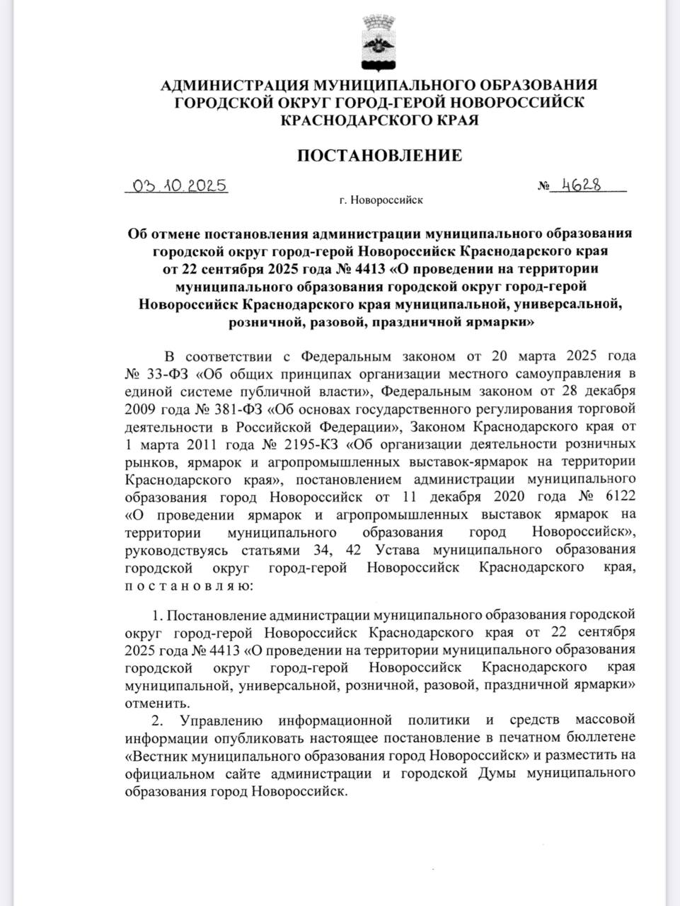 Официальное постановление опубликовано на сайте городской администрации.