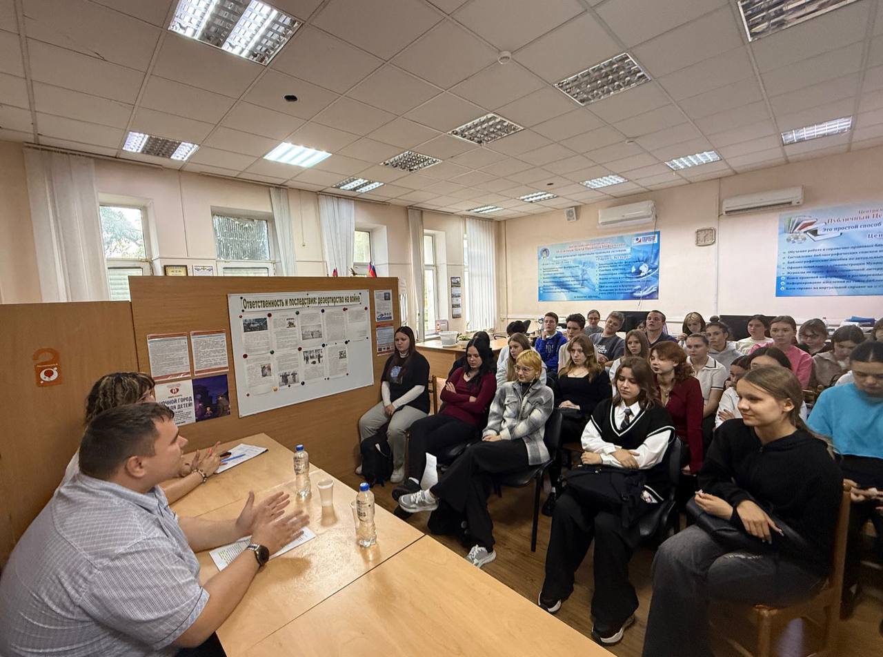 В Центральной городской библиотеке имени Э.Э. Баллиона в рамках заседания клуба «Правовая планета» сотрудники отделения по связям со СМИ Управления МВД России по городу Новороссийску и сотрудники специализированного подразделения по раскрытию и расследованию ИТТ-преступлений провели встречу со студентами средних специальных учебных учреждений города-героя.