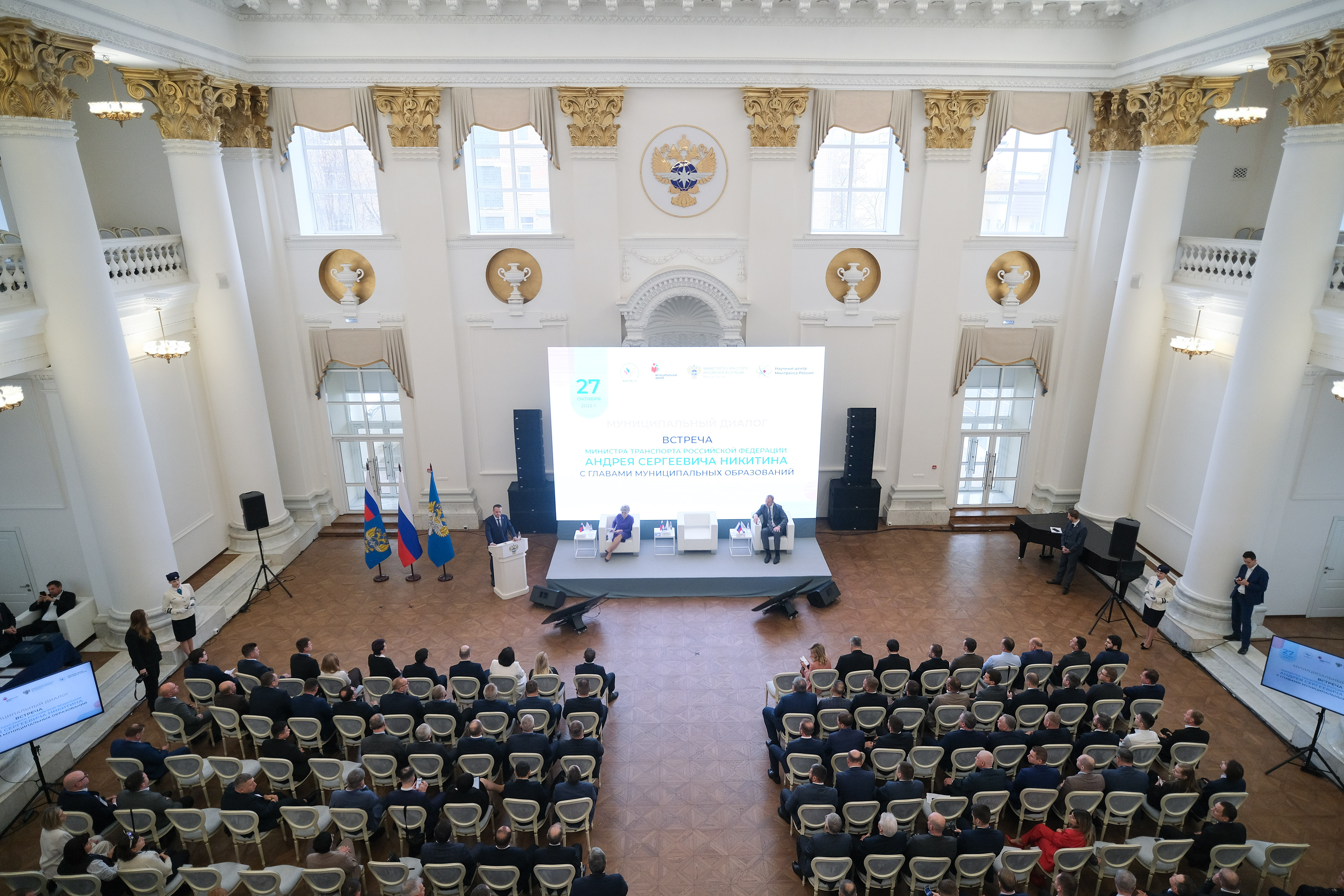 В Москве в рамках флагманского проекта ВАРМСУ «Муниципальный диалог» состоялась открытая сессия «вопрос-ответ» с министром транспорта Российской Федерации Андреем Никитиным. В ней приняли участие замначальника Управления Президента России по внутренней политике Евгений Грачёв, сопредседатель ВАРМСУ Ирина Гусева, главы муниципалитетов страны. На встрече обсудили насущные для городов России вопросы развития транспортной отрасли.