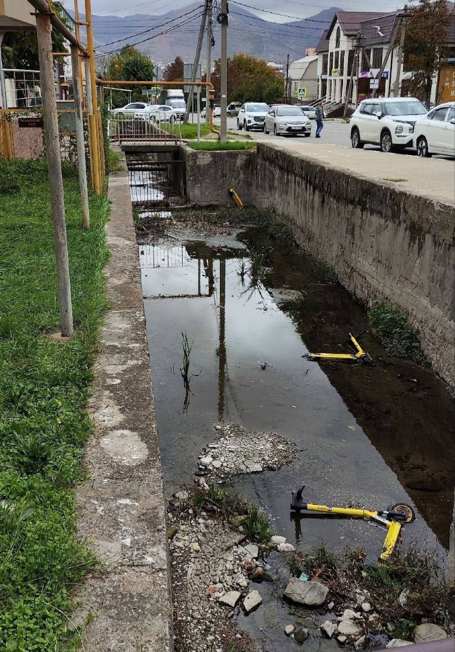 Кто-то топит их в канаве на Луначарского. Уничтожено уже шесть самокатов.