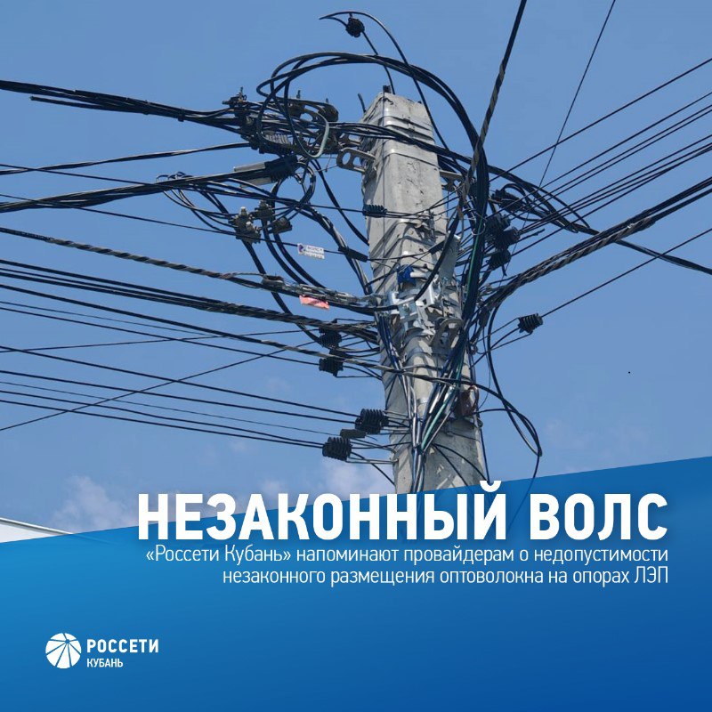 #РоссетиКубань напоминают провайдерам о недопустимости незаконного размещения оптоволокна на опорах ЛЭП