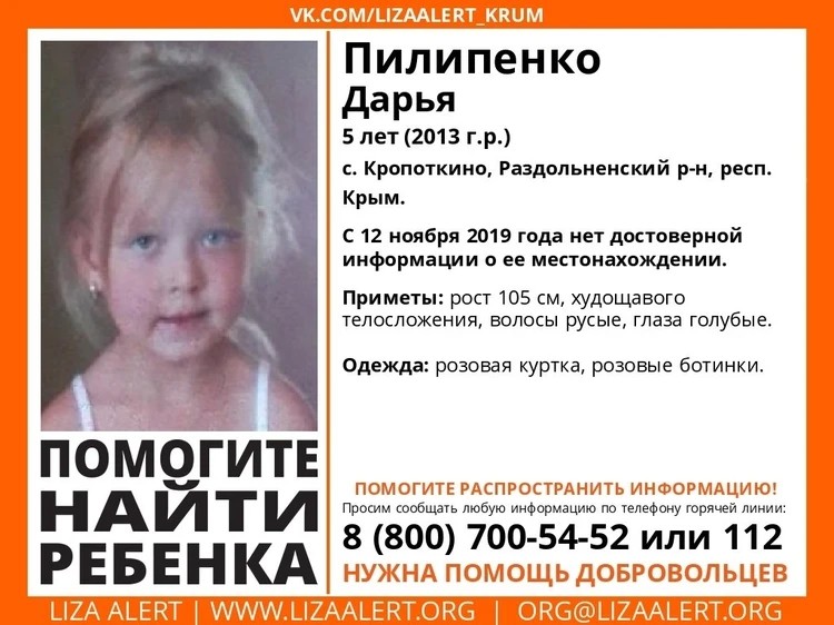 Отметим, что Александр Пилипенко - не родной отец, девочку он удочерил. В тот день силовикам он заявил, что отлучился на какое-то время из дома, а когда вернулся, пятилетняя Даша бесследно исчезла.