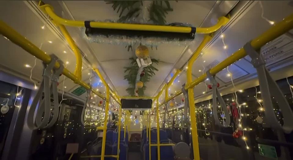 В этом году первым украсили троллейбус №24 — экипаж развесил по салону гирлянды, мишуру и елочные игрушки.