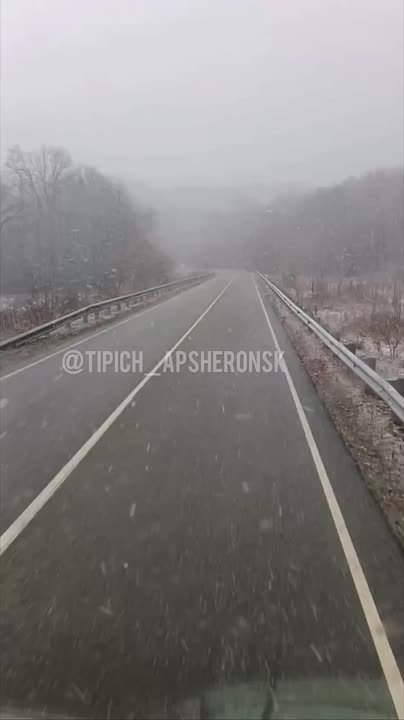 Еще немного о погоде: снег добрался до Апшеронского района.
