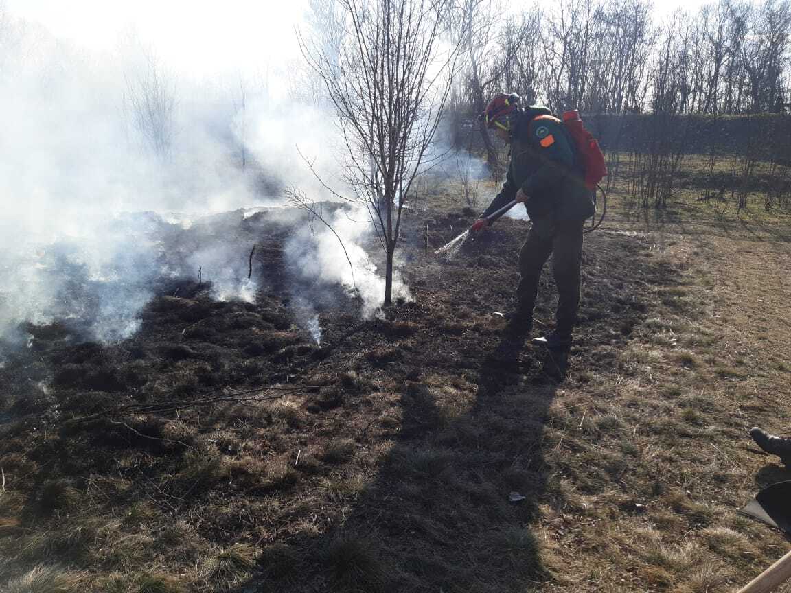 Пожарные тренировались тушить условное возгорание в районе станицы Отважной.