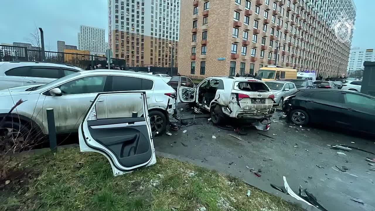Автомобиль взорвался на парковке в Москве, погиб военный.