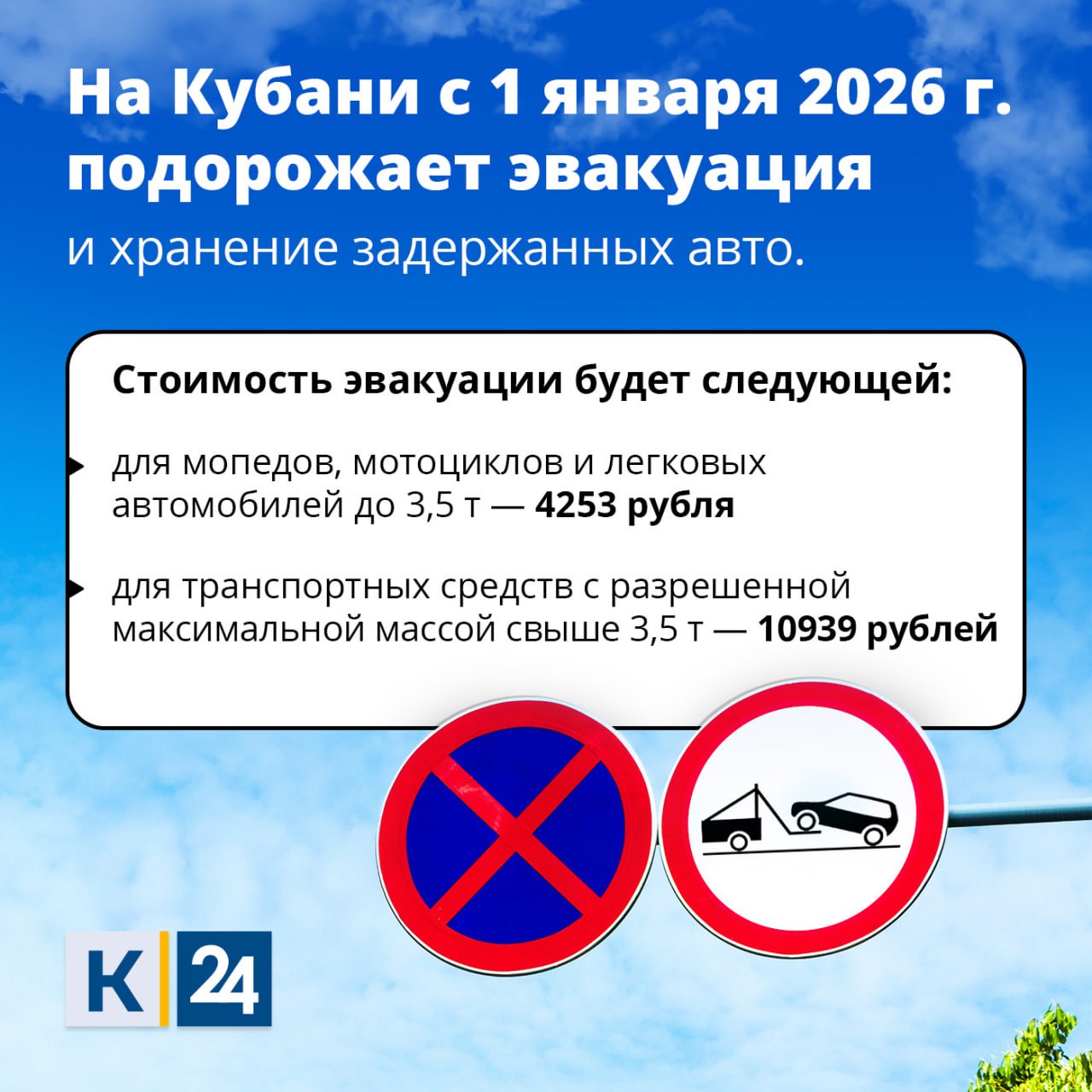 С 1 января 2026 года на Кубани подорожает эвакуация и хранение задержанных авто.