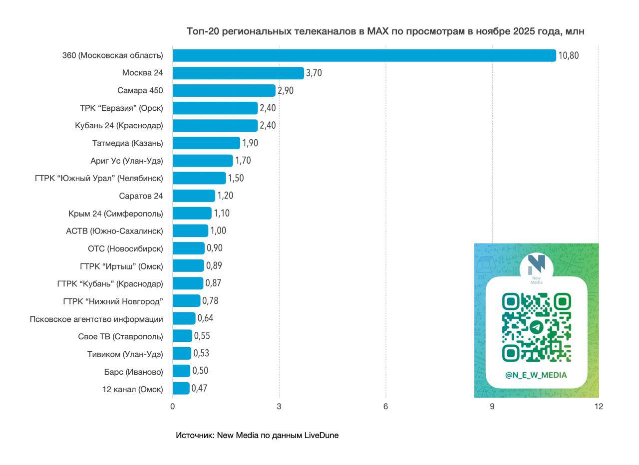 «Кубань 24» вошла в топ-20 региональных телеканалов по количеству просмотров в МАХ.