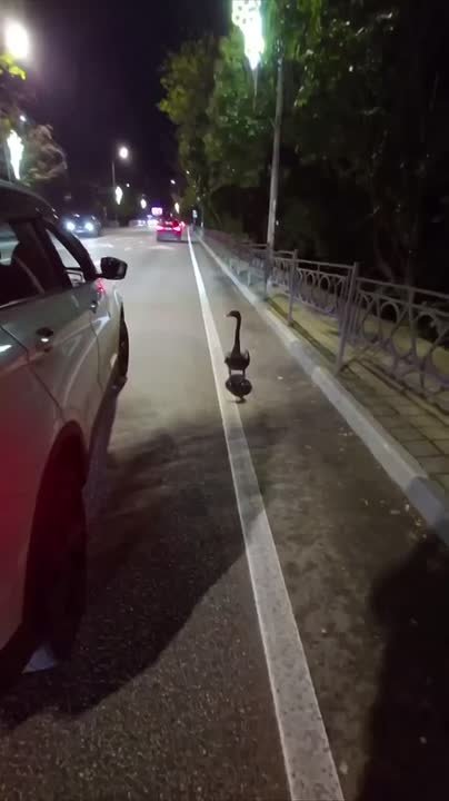 Черный лебедь заблудился в Сочи: птицу заметили на проезжей части Курортного проспекта.