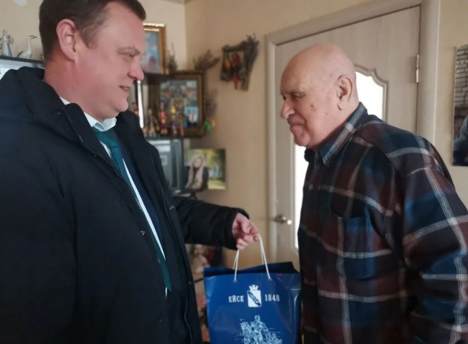 Сегодня ейчане-фронтовики Кохан Владимир Иванович и Мамыко Мария Леонтьевна принимали поздравления с наступающим Новым годом. Подарки ветеранам передал заместитель главы Ейска Михаил Тютюнников. От главы города Дениса Квитовского, от себя лично, от всех ейчан он пожелал уважаемым людям крепкого здоровья, благополучия и мира в новом году.
