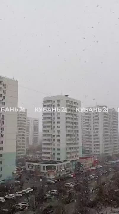 На видео — снегопад укрывает улицы Краснодара.