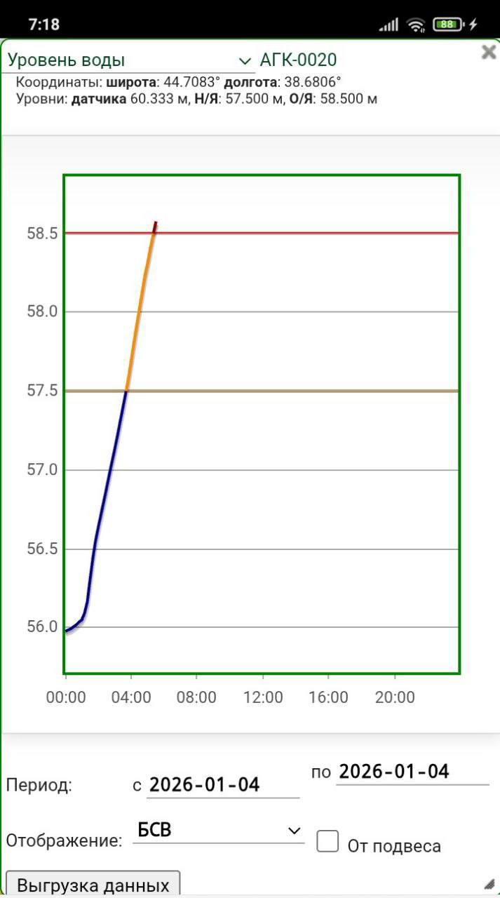 Датчик системы мониторинга зафиксировал — уровень воды в реке Афипс превысил отметку «Опасное явление».