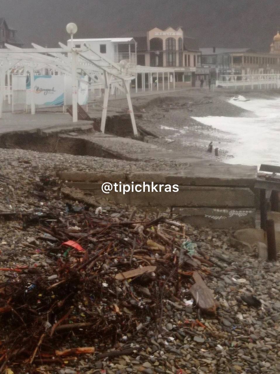 Черноморскому побережью изрядно досталось в первые дни нового года - так сейчас, после разгула стихии, выглядит пляж в Архипо-Осиповке.