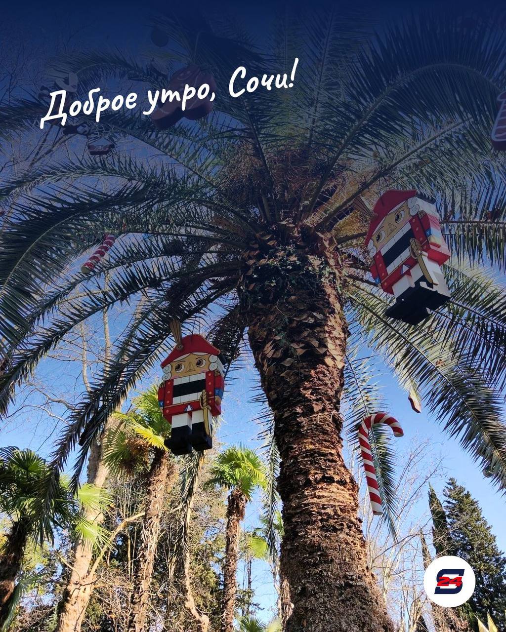 Новогодний факт о Сочи: именно здесь в январе можно встретить цветущие растения и зелёные пальмы. Зима выглядит совсем по-курортному.