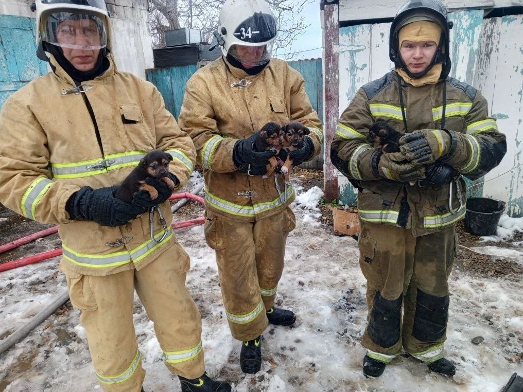 В Курганинском районе пожарные спасли из сгоревшего здания щенков