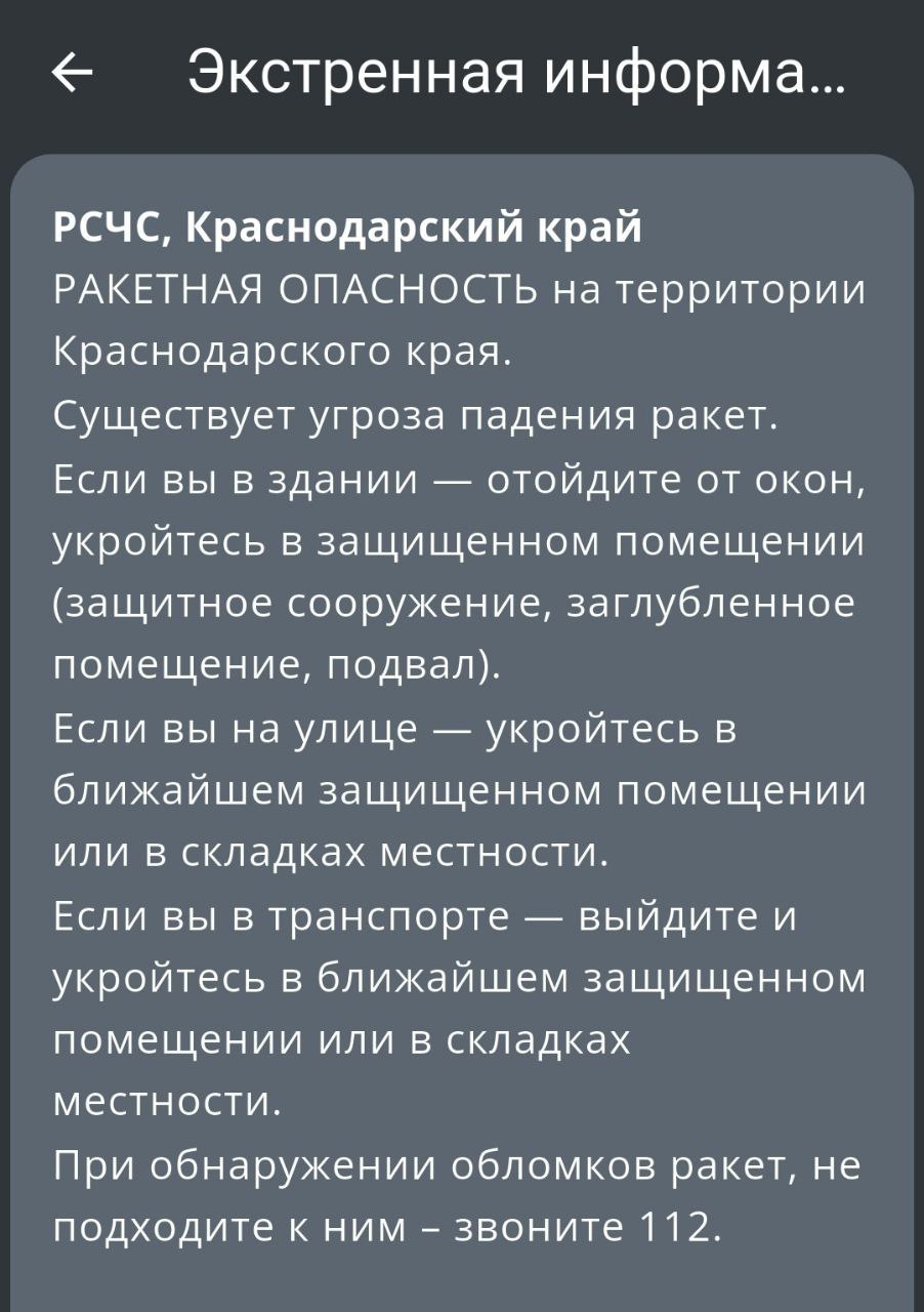Если вы услышали сирену, голосовое оповещение или получили SMS:Находясь в помещении:Отойдите от окон.Укройтесь в глухом помещении без остекления.Находясь на улице:Проследуйте в ближайшее подземное пространство: подвал, цокольный этаж;...