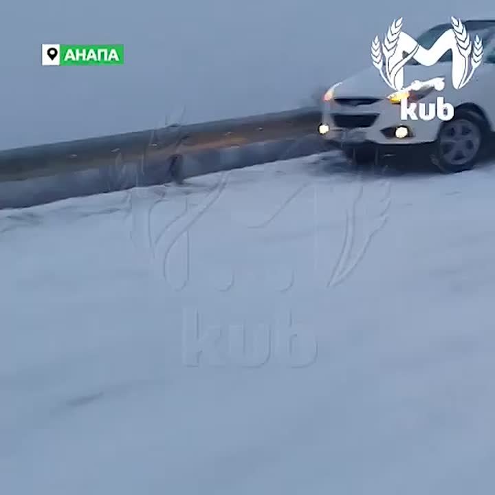 В Краснодаре уже 7-бальные пробки, Новороссийск на очереди — там тоже пошёл снег. В Анапе на дорогах сильный гололёд — пассажирам автобуса №132 пришлось выйти из салона и самим толкать его вверх по скользкому склону.