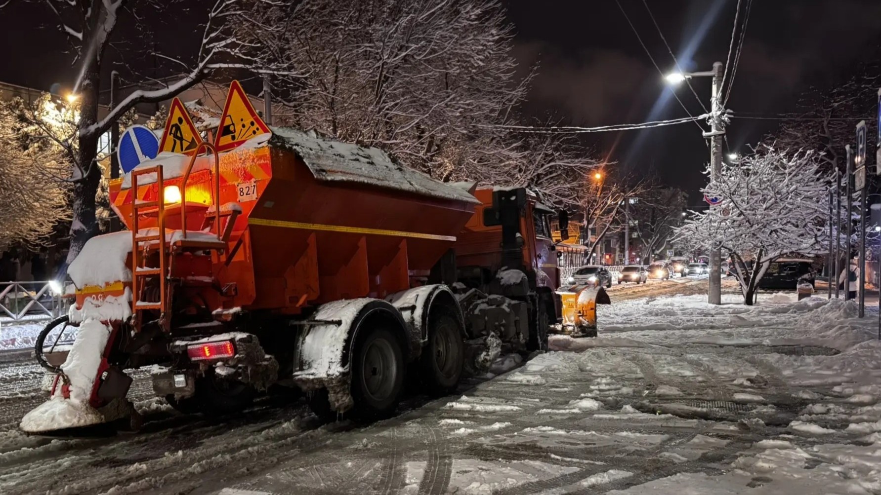— Начинается полноценная обработка дорог, мостов и путепроводов от гололёда. Она продлится всю ночь. Работают минимум 30 комбинированных дорожных машин. Также в ночные часы специалисты продолжат посыпать песко-соляной смесью тротуары, пешеходные переходы и подходы к остановкам. Ранним утром их количество будет увеличено до 600, как сегодня, — написал на своей странице во «ВКонтакте» глава города Евгений Наумов.