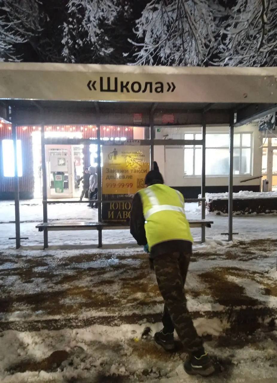 Также ночью и ранним утром будут посыпать песком и солью тротуары, пешеходные переходы и остановки. К утру число рабочих вырастет до 600 человек.