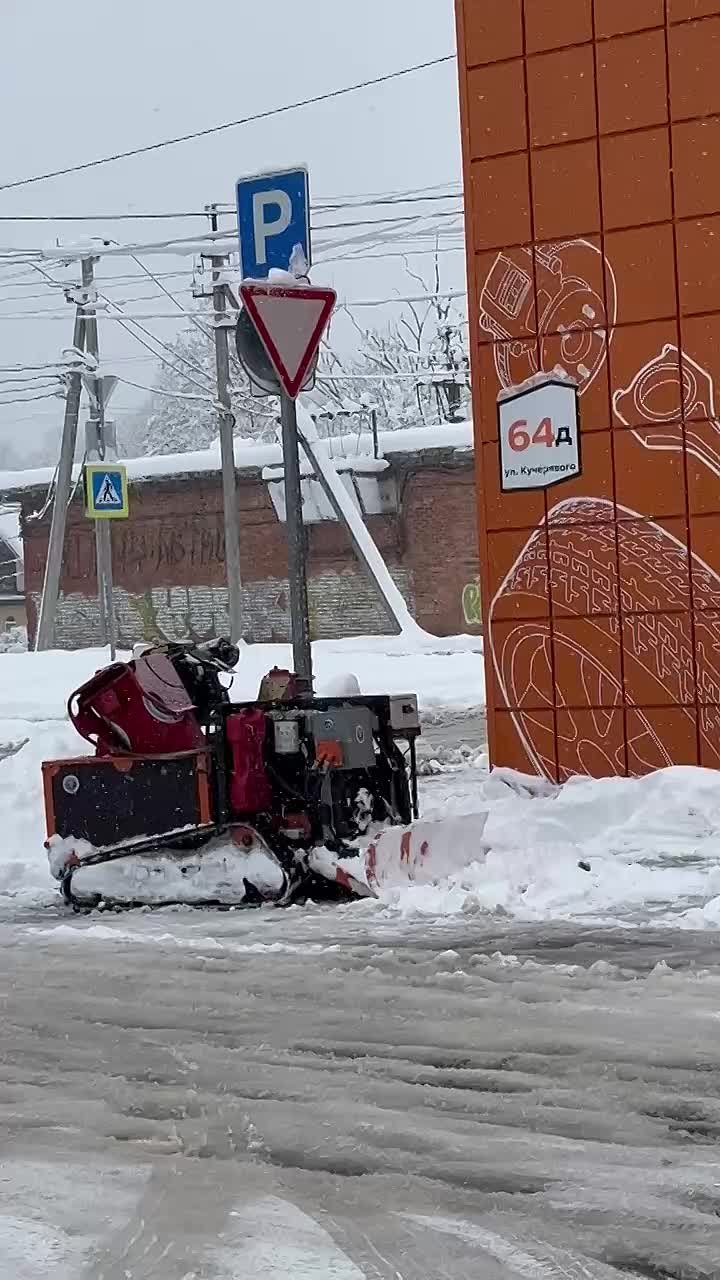 В Горячем Ключе замечен управляемый тракторенок, который под руководством человека расчищал дорогу.