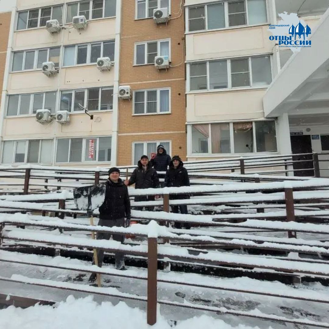 Отцы очистили от снега и наледи пандусы возле подъездов одного из жилых домов, подходы и площадки у детского сада № 102. Особое внимание отцы уделили именно пешеходным зонам и входным группам — тем местам, где риск травм в зимний период особенно высок.