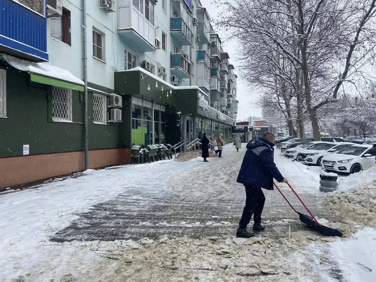 Предприятия потребительской сферы очищают подходы к своим объектам от снега и обрабатывают лестницы и входные группы песко-соляной смесью.