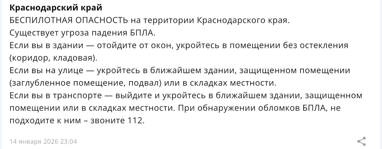 Среда, 14 января. «Крым 24».Над территорией Крыма и над акваторией Азовского моря средства противовоздушной обороны уничтожили 13 украинских беспилотников 14 января. Об этом сообщили в Минобороны России.Всего в период с 13:00 до 20:00 были...