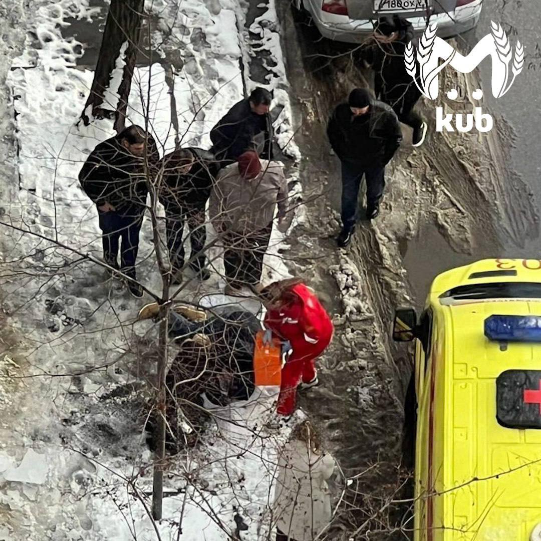 Сосулька рухнула на голову пешеходу на Комсомольской в Краснодаре.