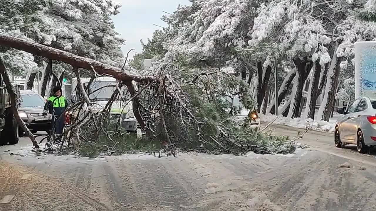 В результате неблагоприятных погодных условий с раннего утра было частично ограничено движение транспорта по проспекту Геленджикскому в районе остановки «Сосновая роща». Причиной стало падение веток на проезжую часть.