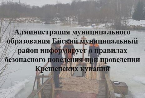 Администрация муниципального образования Ейский муниципальный район информирует о правилах безопасного поведения при проведении Крещенских купаний.