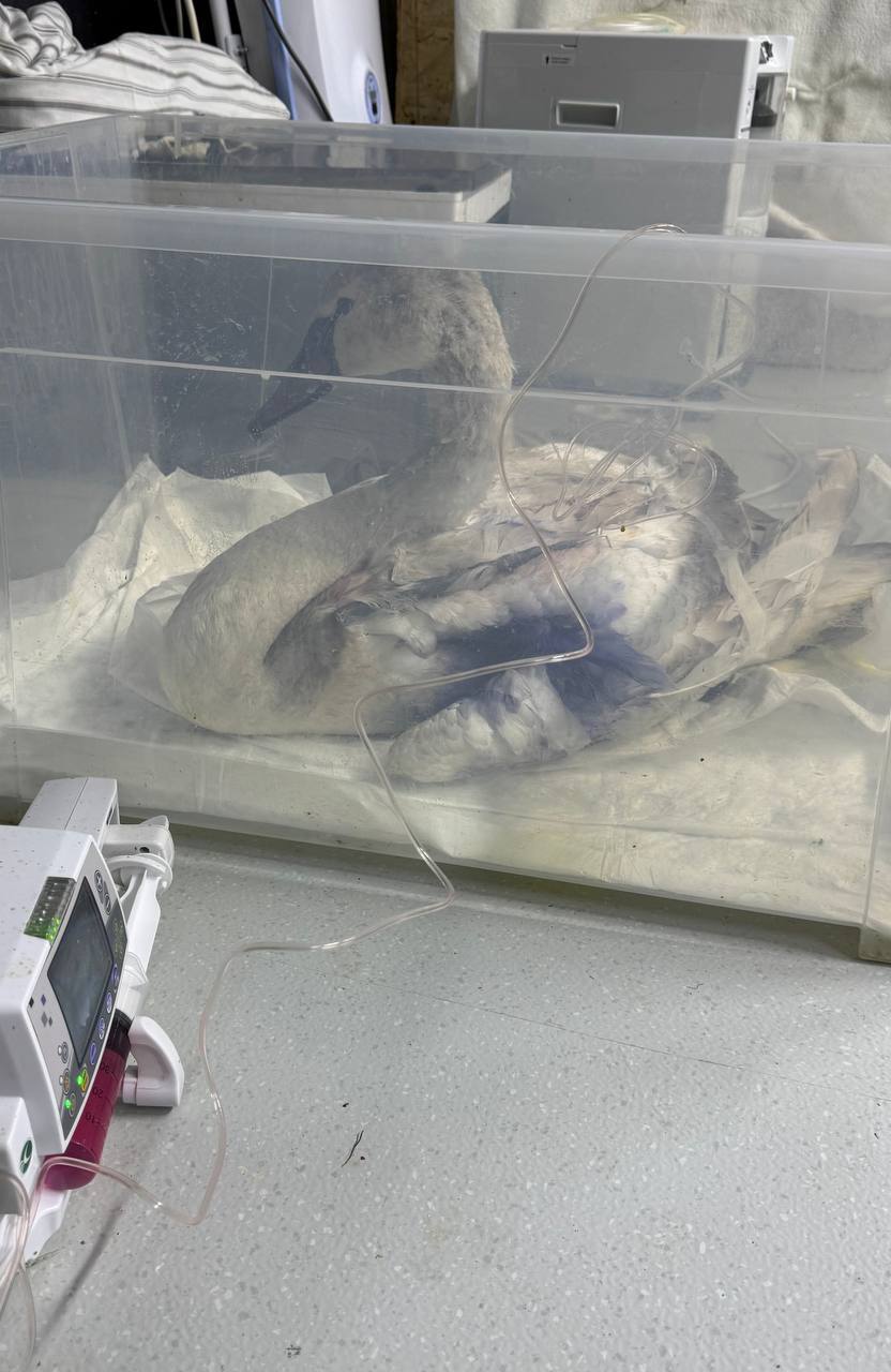 Одна птица выжила, её обнаружил мужчина. Он связался с центром реабилитации и отвёз крылатого к ветеринарам. Специалисты провели операцию, сейчас лебедь восстанавливается.