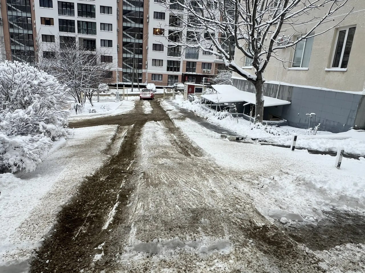 Дорога на территории станции скорой помощи, Больничный переулок и прилегающая к городской больнице территория уже расчищены и обработаны противогололедными материалами.