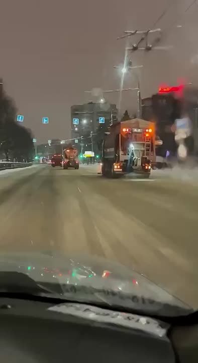 Всю ночь проводилась обработка дорог. За последние сутки песко-соляной смесью посыпали более 1600 км дорог. Для этого использовано свыше 1400 тонн смеси.
