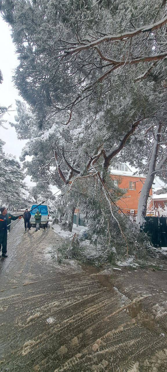 На этой неделе коммунальщики работают в усиленном режиме. Из-за обильного снегопада на территории курорта под тяжестью снега ломаются ветви и стволы деревьев. Специалисты БХО проводят распиловку, обрезку и вывоз растительных остатков.