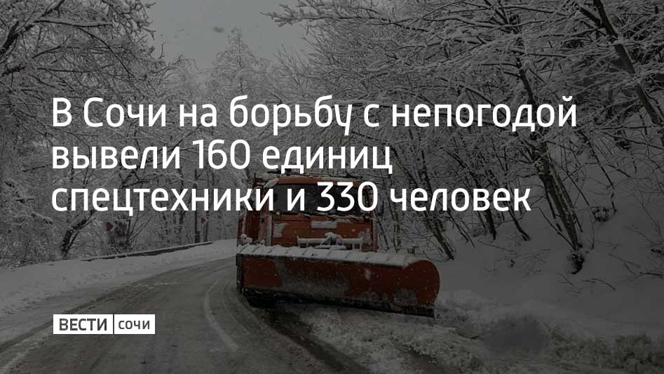 В ликвидации последствий непогоды в Сочи участвуют 160 единиц спецтехники и 330 человек. За сутки было использовано 515 тонн противогололедных материалов, рассказали в мэрии.