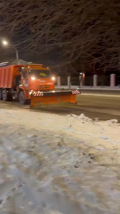 Всю ночь дорожными и коммунальными службами проводилась обработка дорог
