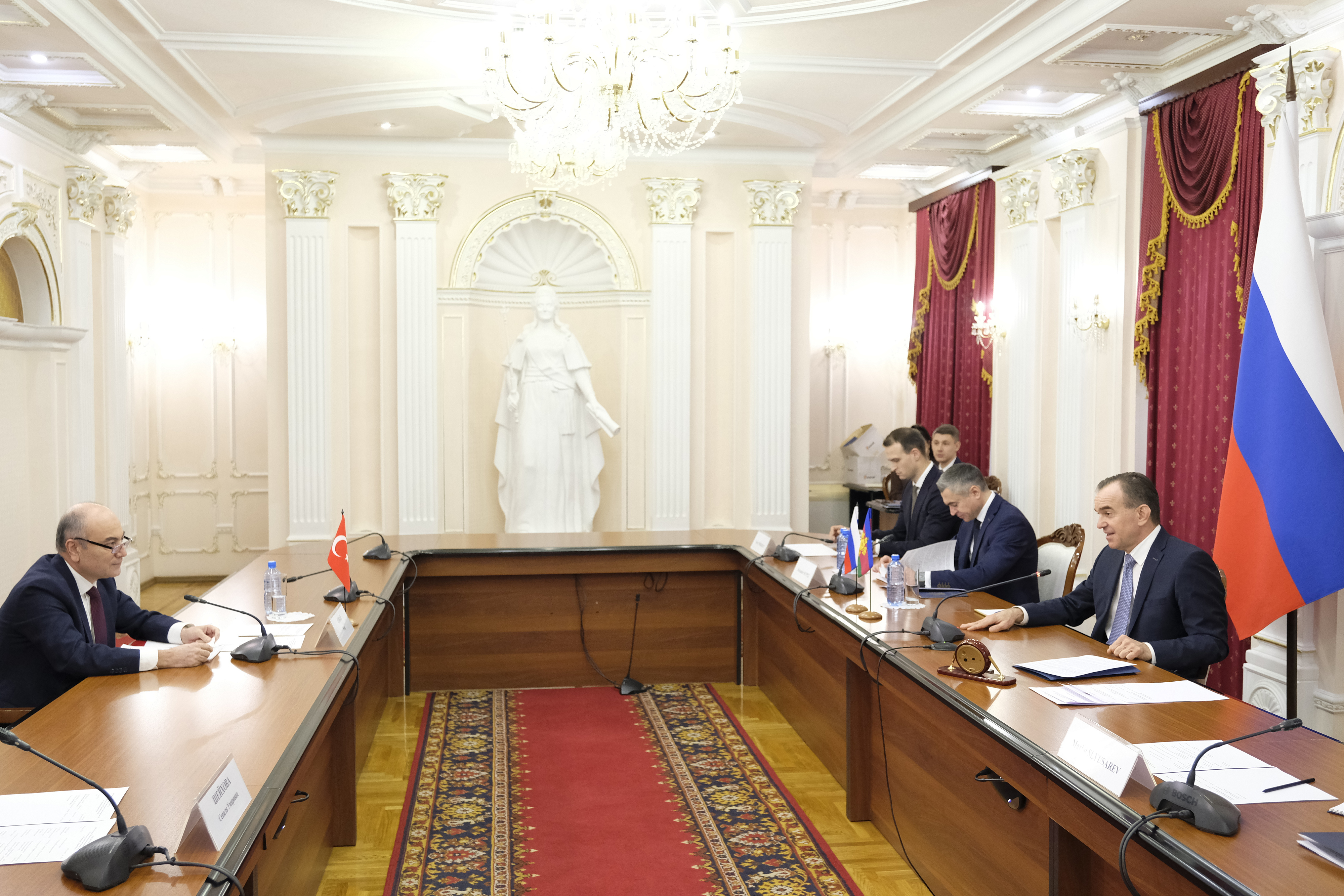 – Краснодарский край и Турцию связывают давние партнерские отношения, которые мы готовы расширять. И сегодня на первый план выходят экономические связи – это важная составляющая развития любого региона. Мы можем увеличивать товарооборот, который ежегодно составляет порядка 2 миллиардов долларов США. Но любое сотрудничество должно быть взаимовыгодным. Как ведущий аграрный регион, готовы наращивать поставки широкого ассортимента продукции, в том числе зерна, семян, консервов, сахара, известного на всю страну кубанского вина, которое для нас является предметом особой гордости. Дополнительные возможности для бизнеса может открыть и запуск новых совместных производств, – сказал Вениамин Кондратьев.