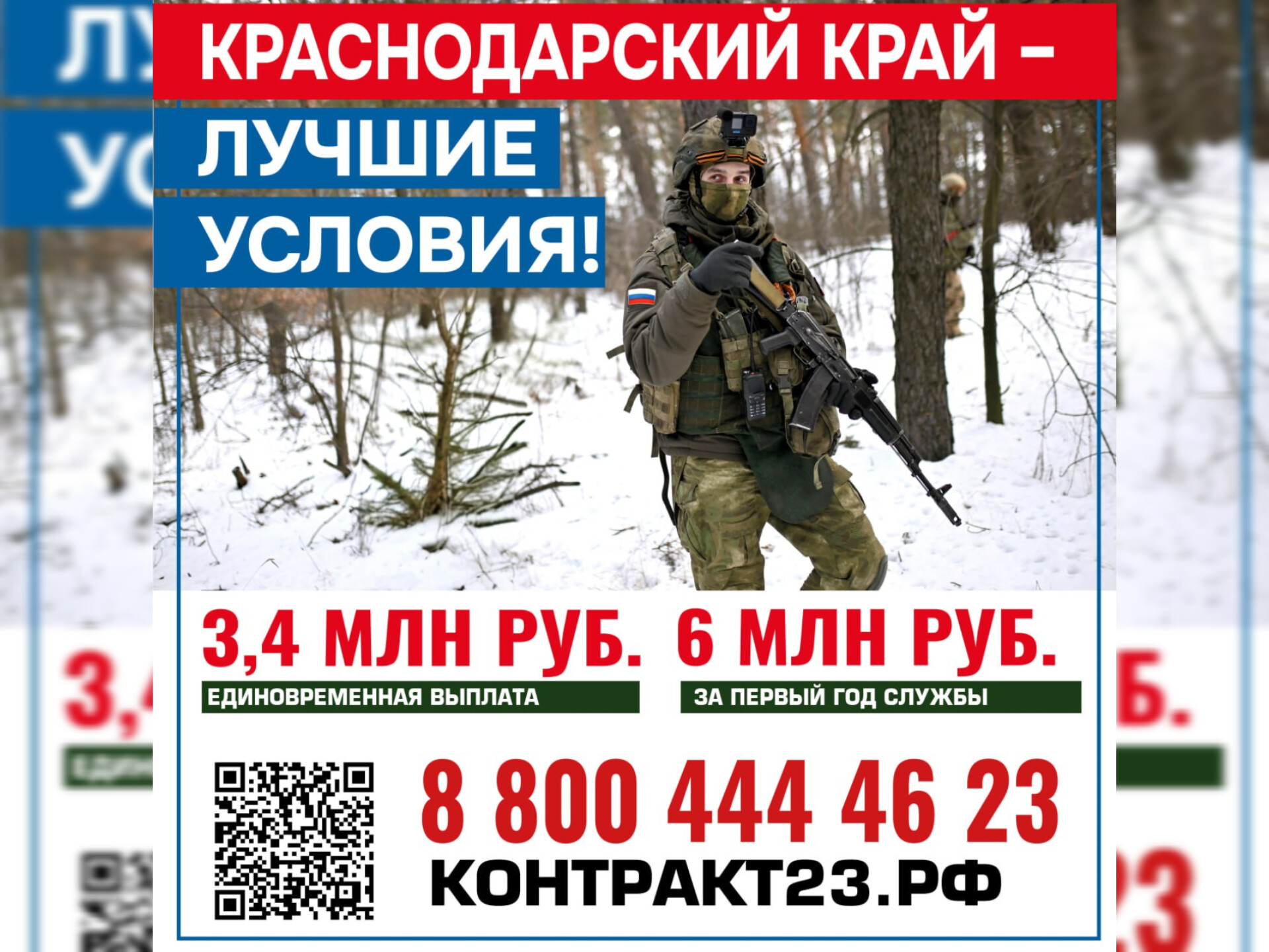 Только за первый год службы в зоне СВО – после заключения контракта от любого муниципалитета Краснодарского края – военнослужащие получат 6 млн рублей.