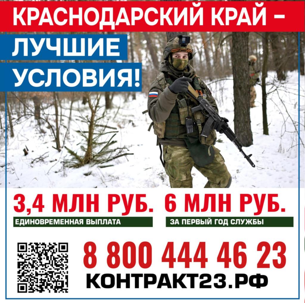 Только за первый год службы в зоне СВО – после заключения контракта от любого муниципалитета Краснодарского края – военнослужащие получат 6 млн рублей.
