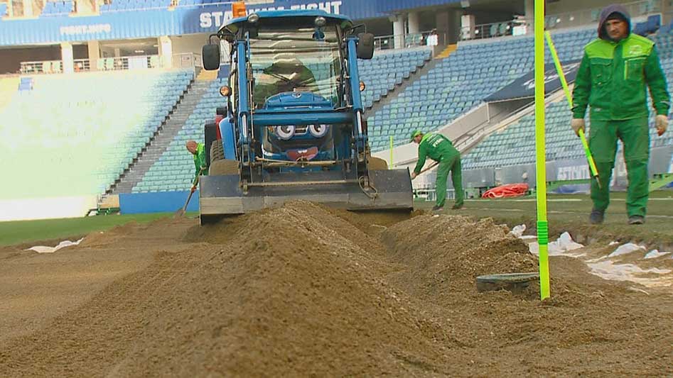 Газон стадиона фишт готовят к возобновлению сезона рпл