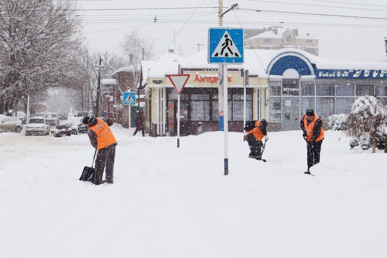 На дорогах Армавира ведётся комплексная работа по ликвидации последствий снегопада. В этом задействованы десять единиц специализированной техники, которая выполняет расчистку проезжей части, а затем посыпает ее песчаносолевой смесью для предотвращения образования наледи. Также более 120 дворников убирают снег с остановок, тротуаров, общественных и дворовых территорий.